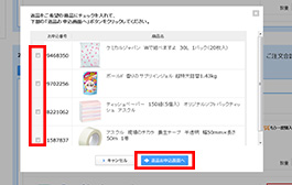 返品する商品にチェックを入れて【返品お申込画面へ】ボタンをクリック